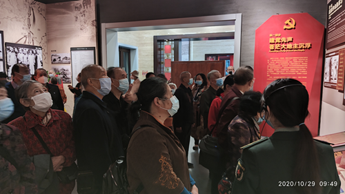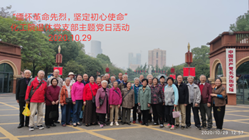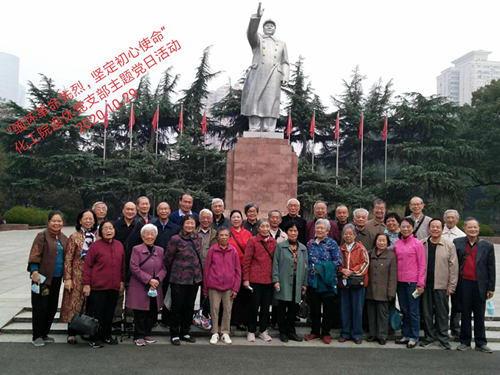 2020年10月29日化工学院退休党支部组织党员及家属33人,早上八点半从学校五食堂出发,经过半小时的车程,到达了清水塘八一路538号——中国共产党长沙历史馆,由于预约是九点半,大家进入大门后,在毛泽东塑像广场照相留影,等待讲解员的到来。