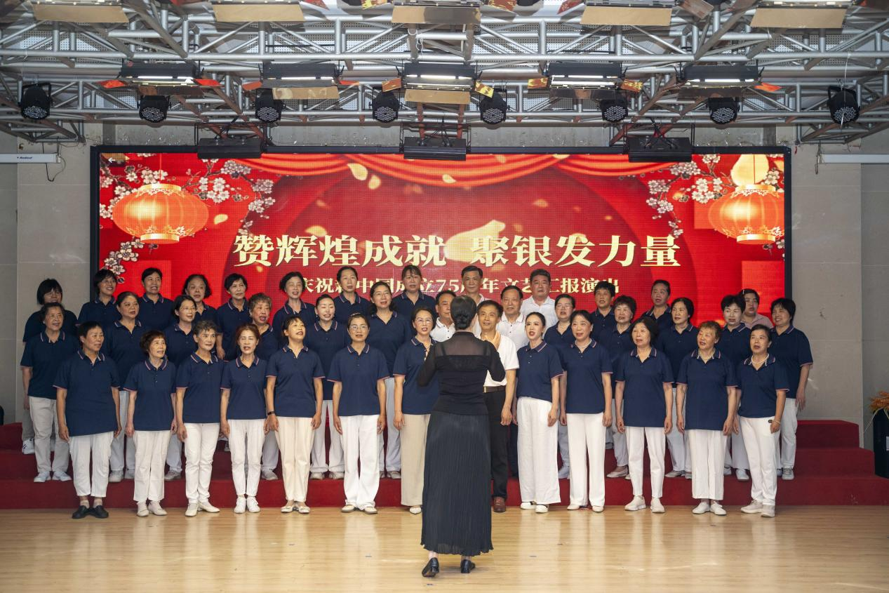 6月12日,“赞辉煌成就,聚银发力量”庆祝新中国成立75周年文艺汇报演出在tapplay官网教职工活动中心二楼多功能厅举行。活动由tapplay官网tapplay官网主办,tapplay官网老年大学承办。 文艺汇演上,老教工们自信从容、意气风发,展示了积极进取的精神面貌,用舞蹈、太极、京剧、时装模特走秀、合唱等表演形式,在汇演舞台上共同回忆青春年华,为祖国75载辉煌历程深情献礼。(宣传部供稿)