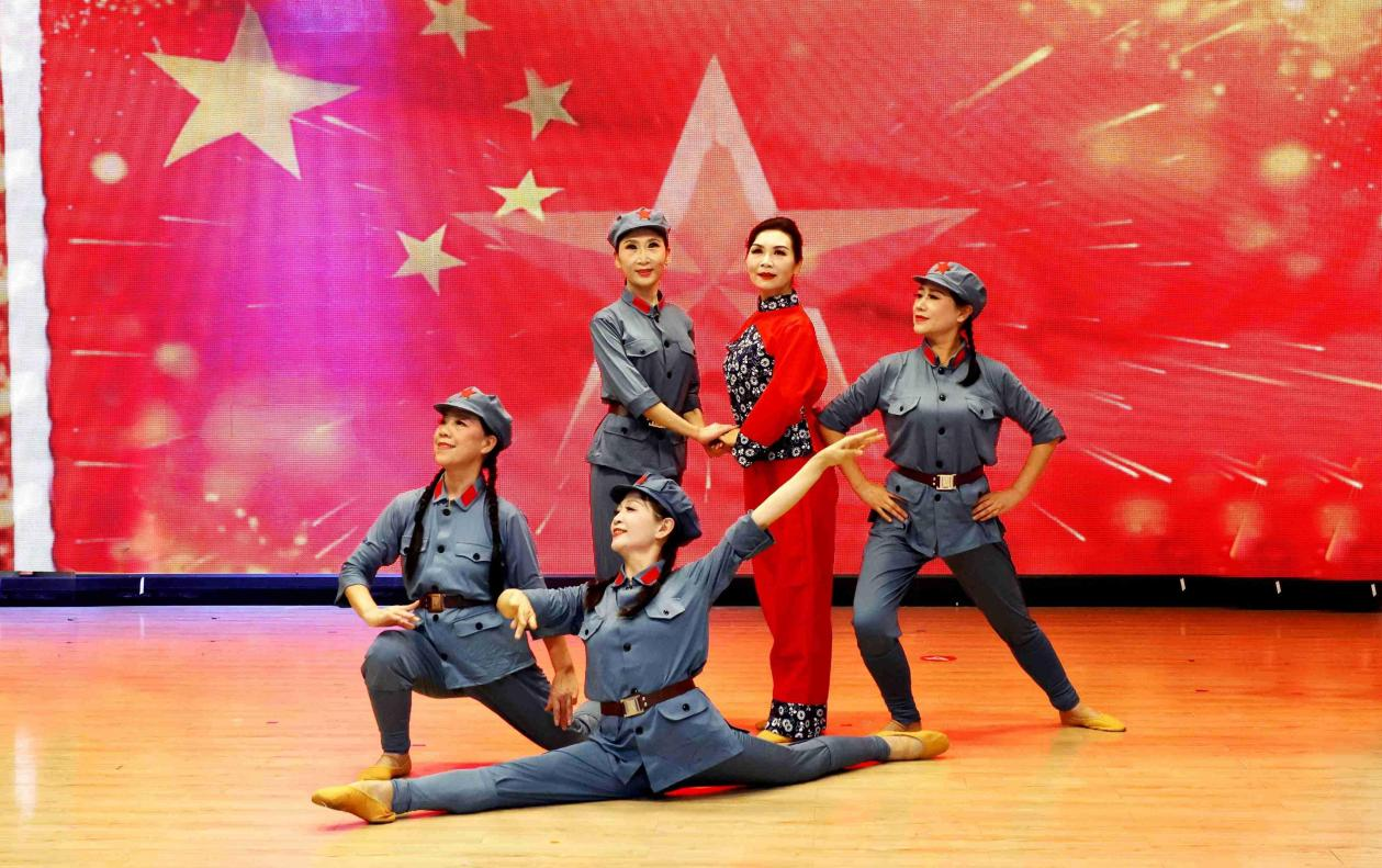 文艺汇演上,老教工们自信从容、意气风发,展示了积极进取的精神面貌,用舞蹈、太极、京剧、时装模特走秀、合唱等表演形式,在汇演舞台上共同回忆青春年华,为祖国75载辉煌历程深情献礼。(宣传部供稿)