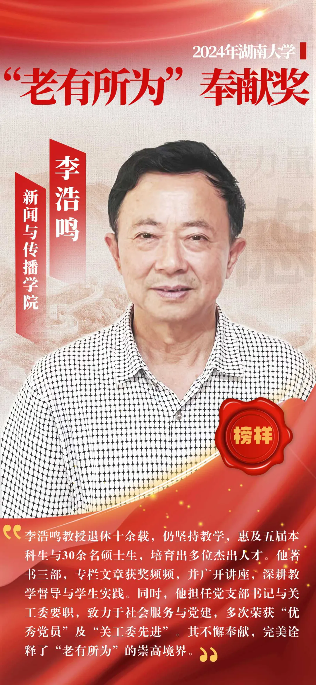 第40个教师节来临之际,让我们聚焦今年“老有所为”奉献奖的获得者们。今年,李浩鸣、李松龄、许华娜、夏宗禹、张智(以姓氏拼音为序)等五位老师获奖。他们中,有的热心公益,用自己的专业知识和人生经验,为社区、为学校、为学生搭建起一座座沟通的桥梁;有的笔耕不辍,继续深耕学术领域,用一篇篇高质量的论文和著作,为学科发展贡献余热;还有的,则投身于边疆支教,用专业、用爱心、用责任,讲述着一个个动人的故事,激发着年轻一代对美好生活的向往与追求。
